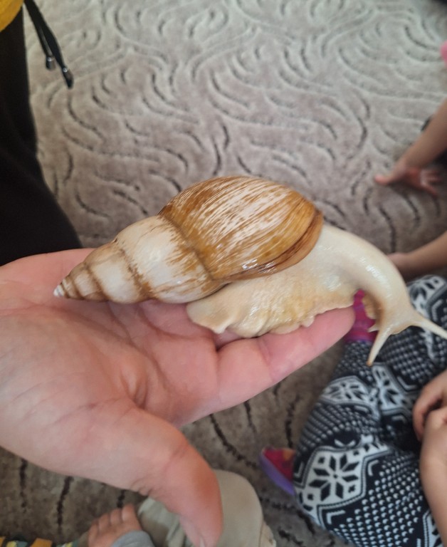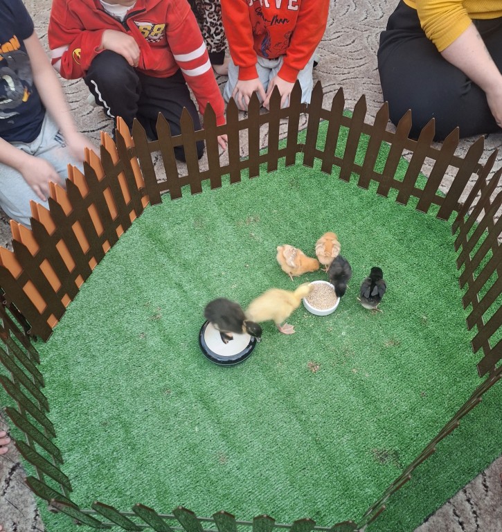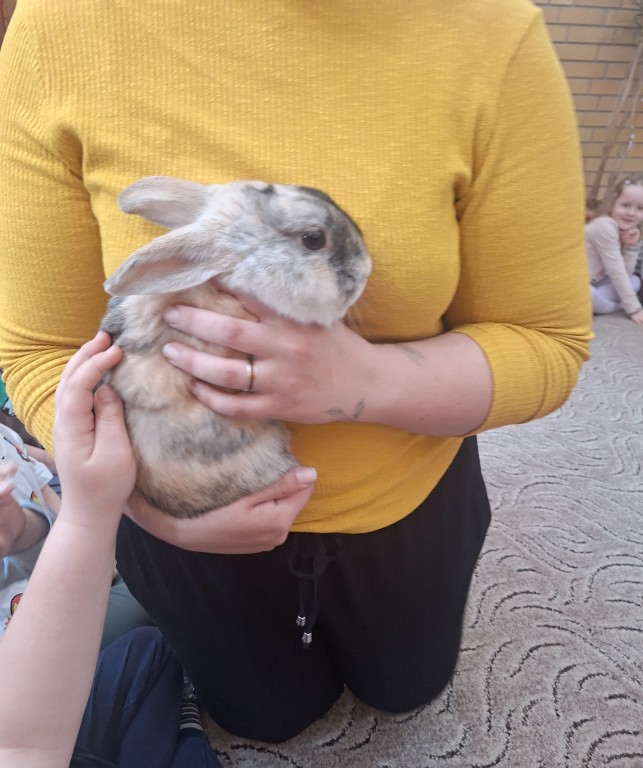 Na zajęciach poznały życie i zwyczaje zwierząt. Tym razem gościliśmy króliczka, ślimaka afrykańskiego, żabki oraz różne pisklątka.